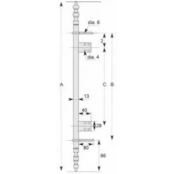Béquille simple du 980801 carré de 7 mm, longueur 115 mm